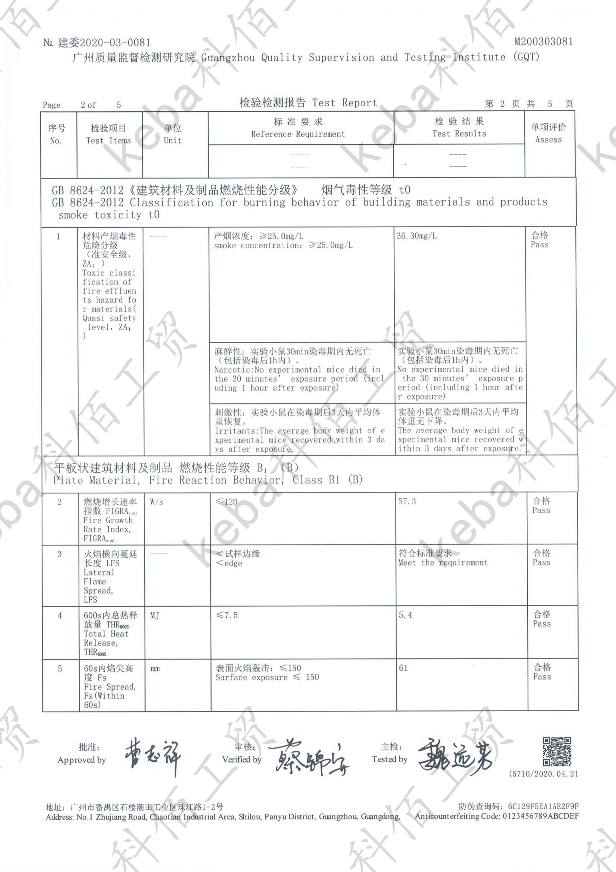 2020年科佰又成功通過廣州質量監(jiān)督檢測研究院對仿真茅草瓦產品進行檢測,再一次證明科佰產品的質量過硬,經得起考驗。