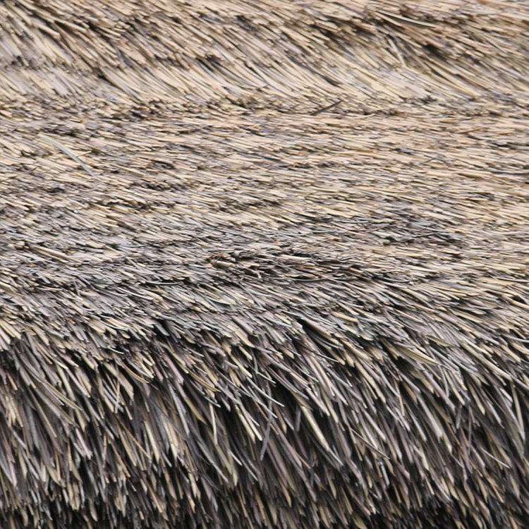屋脊分斜脊和正脊,先將茅草鋪在斜脊兩側(cè)主面,然后同步從下向上進(jìn)行鋪茅草,直至鋪出脊梁形狀,形成雨水從上向下流的導(dǎo)向,把屋面茅草瓦片鋪完就可以做正脊收口,這里斜脊和正脊茅草要把主屋面茅草壓住,可根據(jù)實(shí)際大小調(diào)整茅草瓦片的長(zhǎng)短,可剪成小片茅草,便宜安裝,體現(xiàn)自然效果。鋪完屋脊兩邊再在屋脊正梁上鋪一排茅草,這樣整個(gè)茅草屋頂基本安裝完畢,剩下收尾部分,可根據(jù)自己的喜好效果,適當(dāng)修飾調(diào)整。