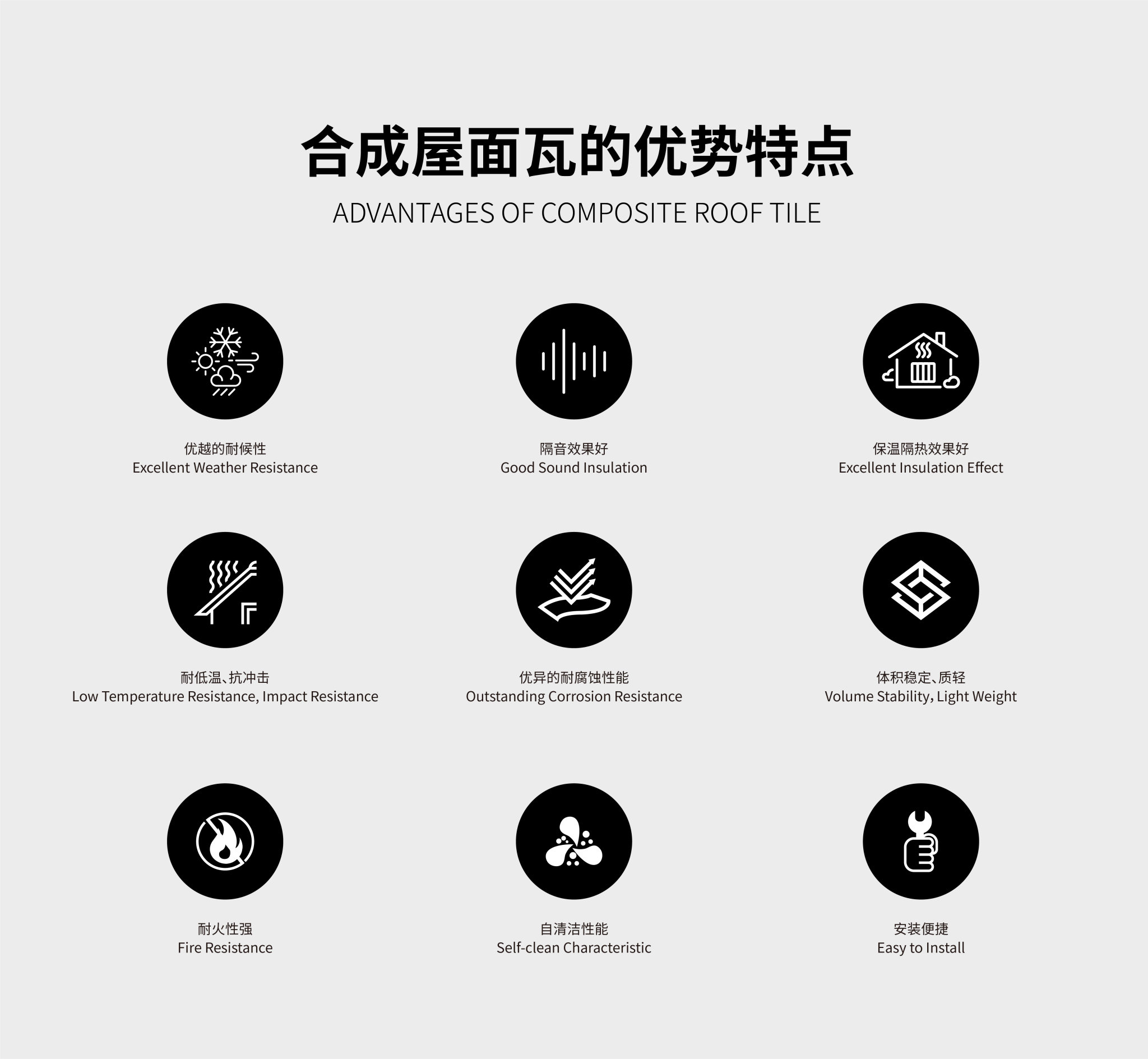 ? ? ? ? 合成屋面瓦是深圳市科佰工貿(mào)有限公司采用目前國際上先進(jìn)的納米合成高分子改性樹脂,高強(qiáng)纖維,納米空心微珠等材料為主原料技術(shù)和工藝生產(chǎn)。采用科學(xué)的配方和先進(jìn)的生產(chǎn)工藝,自動(dòng)化流水線生產(chǎn)的新型環(huán)保屋面產(chǎn)品。利用納米粒子的特有的物理化學(xué)性質(zhì),使得其具有更加優(yōu)異的耐候性及阻燃性,能滿足美國ASTM-G154-06 抗UV老化測試標(biāo)準(zhǔn),并能通過美標(biāo)UL94-V0級(jí)阻燃,在國內(nèi)合成屋面瓦也通過了國家防火建材阻燃測試B1級(jí)。?